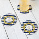 Match the rest of the classic nautical wedding décor with these paper coasters. A gold ship’s wheel is striking against the classic navy blue and white stripes. In the center is a gold anchor with the monograms of the bride and groom, and the wedding date.