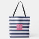 Navy Blue Stripes and Pink Monogram Tote Bag