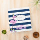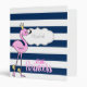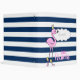 Adorable flamingo on navy blue stripes with your name.