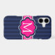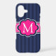 Navy Blue Stripes Hot Pink Custom Monogram Case-Mate iPhone Case