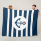 Navy-Blue Stripes & Nautical Boat Anchor Fleece Blanket