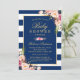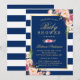 Navy Blue Stripes Pink Floral Classy Baby Shower Invitation