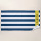 Navy Blue Stripes, Striped Pattern, Your Name Beach Towel