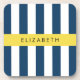 Navy Blue Stripes, Striped Pattern, Your Name Beverage Coaster
