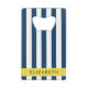 Navy Blue Stripes, Striped Pattern, Your Name Credit Card Bottle Opener