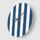 Navy Blue Stripes, White Stripes, Striped Pattern Large Clock