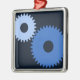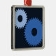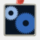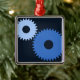 A stylish, sophisticated illustration design for men of a large and small blue cog from machinery against a dark navy blue background. Cool and hip, this design has a hipster geeky vibe.