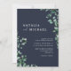 Navy Blue Subtle Greenery | Elegant Modern Wedding Invitation