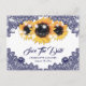 Navy Blue Sunflower Lace Wedding Save The Date Announcement Postcard