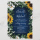 Design features a navy blue barn wood background decorated with watercolor daisies, sunflowers, greenery, eucalyptus, baby's breath, and lily of the valley.