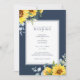 An elegant, watercolor sunflower and eucalyptus foliage design Wedding Invitation with a navy and dusty blue color theme. Ready to customize with fonts of your choice or leave as shown here and add your details for your special day.
