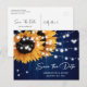 Navy Blue Sunflower Wedding Save The Date Postcard