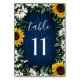 Navy Blue Sunflower Wedding Table Number Cards