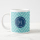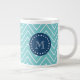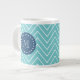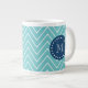 Navy Blue, Teal Chevron Pattern | Your Monogram Giant Coffee Mug