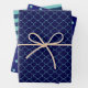 Navy Blue Teal Patterned Wrapping Paper Sheets
