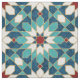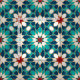 Navy blue, teal, white and red marble Moroccan mosaic pattern with faux gold border.