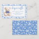 Discover the charm of these adorable diaper raffle cards for a baby blue shower, featuring a cute watercolor navy blue teddy bear adorned with a delightful floral pattern. Elevate your baby shower with these charming tickets, perfect for adding a touch of sweetness to your celebration.