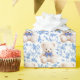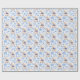 Navy blue cute watercolor teddy bear with floral seamless pattern baby boy shower gift wrapping paper.