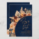 Navy Blue & Terracotta QR Code Save The Date Invitation