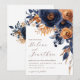 Navy Blue Terracotta Watercolor Elegant Wedding Invitation