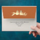 Elegant, modern, terracotta and navy blue 5x7 envelopes for wedding invitations with return address, love birds and faux gold floral lace inside.