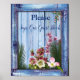 Blue vintage wood textured creative arty design with pink graphic flower decor for a guest or a beach cottage to hold a wedding. This collection comes with a matching guest book for wedding guests or holiday visitors to sign
