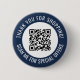 Promotional small business QR code button with a navy blue border and your own QR code and custom text in a curve around your QR code. Thank you for shopping promo button personalized with your QR code and custom text. A custom promotional button with which you can advertize your special offers.