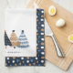 Navy Blue Trees Modern Dots Christmas Name Kitchen Towel