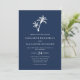 Navy Blue Tropical Palm Tree Beach Wedding Invitation