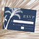 Navy Blue Tropical Palm Tree Beach Wedding RSVP Card