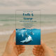 This elegant navy wedding invitation is perfect for a coastal wedding. The design features a beautiful under-the-sea view of playful dolphins with sleek navy blue calligraphy on a clear acrylic background.