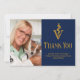 Custom navy blue and gold veterinary school graduation thank you cards with the veterinarian medical caduceus next to your graduate photo. Customize these cards of thanks with chic script next to your photograph for your animal clinic.