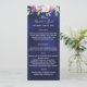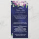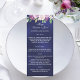 Navy blue violet florals wedding dinner menu card