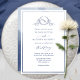 Navy Blue Watercolor Elegant Monogram Wedding Invitation