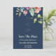 Navy Blue Watercolor Floral Save the Date Card