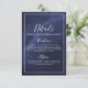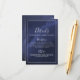 This minimalist wedding details card features a navy blue watercolor background with white fonts and a simple white line frame on both the front and back. This card includes essential details about the reception, accommodations, travel, attire, and more. Exuding simplicity and elegance, it ensures your guests are well-informed for your magical evening. The text is presented in a mix of calligraphy script typography and a classic serif font. The simple and elegant design integrates seamlessly with any wedding theme, including traditional, classic, modern, nautical, or celestial. It works well for spring, summer, autumn, winter, and all seasons of the year, and can also be adapted to match any specific color scheme. The chic navy blue watercolor background and white font colors can be customized to fit your preferences. Its understated elegance makes it a versatile choice for your special day. Simple Stylish Elegant Navy Blue Watercolor Wedding Details Card.