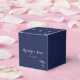 Navy blue wedding favor boxes with little hearts and customizable text - you can add bride's and groom's name and wedding date