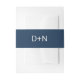 This navy blue wedding invitation belly band is perfect for an elegant wedding. Personalize the paper belly bands with the initials of the bride and groom.
