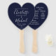 Navy Blue Wedding Program Heart Hand Fan