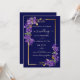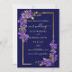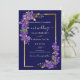 Navy Blue Wedding Purple Violets Gold Frame Invitation