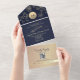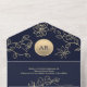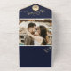 Embrace modern simplicity with our modern all-in-one wedding invitation, where elegant design meets boho charm. Featuring a chic rose gold and navy blue palette and adorned with a delicate monogram at the top, it exudes understated sophistication. Hand-drawn love birds, flowers, and foliage add a touch of whimsy, while the custom picture of the couple at the back adds a personal touch. Complete with space for your photo, website, and QR code for RSVP, it's the perfect blend of contemporary style and convenience, ensuring your special day is as seamless as it is stunning.