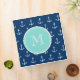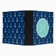 Navy Blue White Anchors Pattern, Mint Green Monogr 3 Ring Binder
