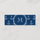 Navy Blue White Anchors Pattern, Your Monogram Mini Business Card