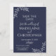 Navy Blue White Botanical Boho Photo Wedding Save The Date