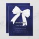 Navy blue white bow Birthday invitation