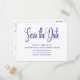 Navy Blue White Calligraphy Wedding Save the Date Invitation Postcard