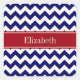 Navy Blue White Chevron Cranberry Name Monogram Square Sticker