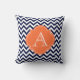 Navy Blue & White Chevron Orange Monogram Pillow
