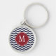 Simple and cute, this Navy Blue & White Chevron Pattern Monogram Keychain is the perfect accessory for your keys!