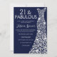 Navy Blue White Dress 21st Fabulous Birthday Party Invitation